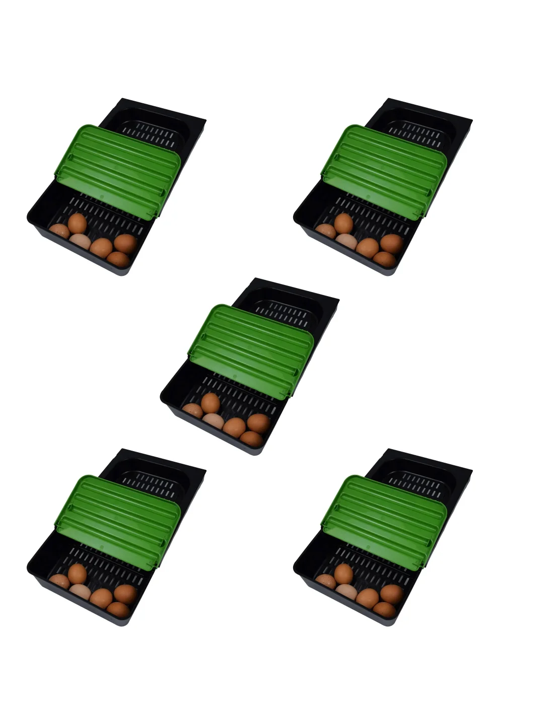 Set de 5 tăvi pentru cuibar găini, concepute pentru colectarea igienică a ouălor. Ajută la menținerea ouălor curate și împiedică găinile să le consume.