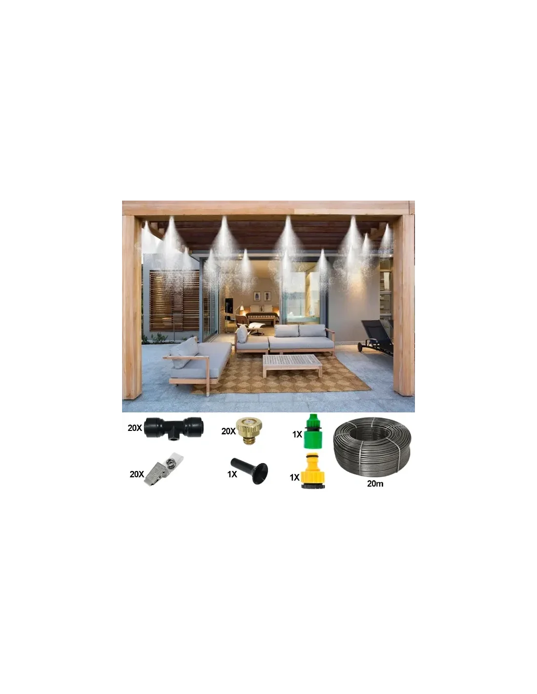 Sistem racire terasa , 20m furtun, 20 duze, 20 conectori T, 20 clipsuri fixare