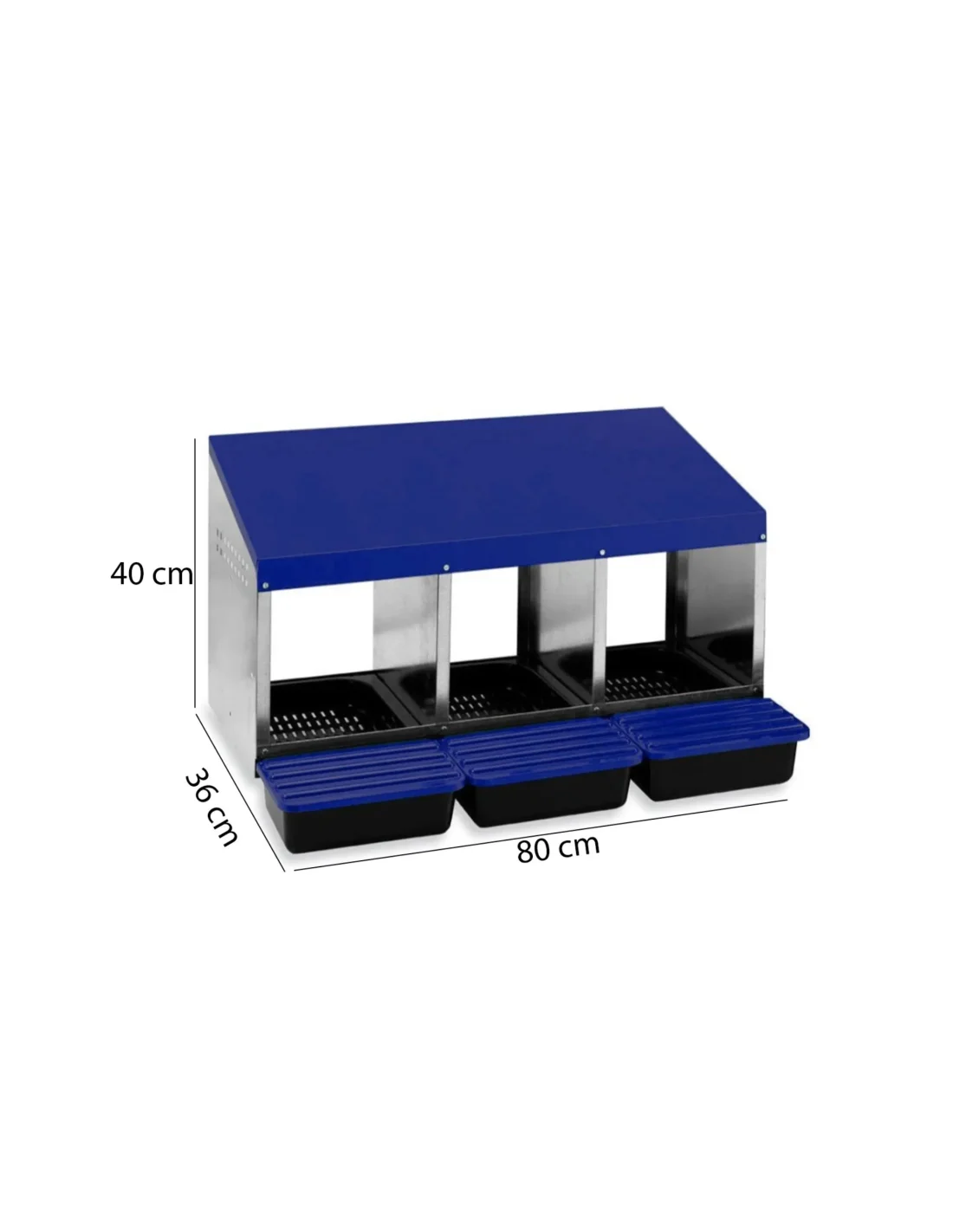 Acest cuibar cu 3 compartimente este conceput pentru a oferi un spațiu confortabil pentru ouat și o colectare eficientă a ouălor. Este potrivit pentru gospodării și ferme mici care doresc organizare și igienă mai bună.