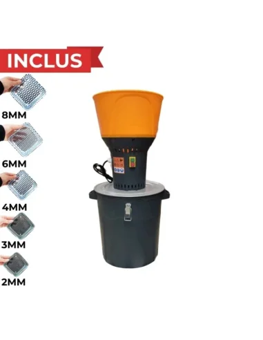 Capacitatea de productie a acestei mori este de 300 kg/h si vine echipata cu 5 site, una de 2 mm, 3 mm, 4 mm, 6 mm si una de 8 mm.