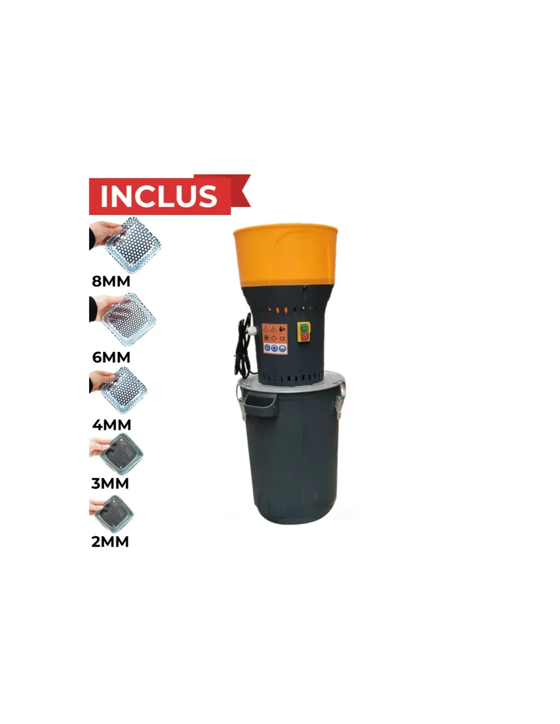 Capacitatea de productie a acestei mori este de 250 kg/h si vine echipata cu 5 site, una de 2 mm, 3mm, 4 mm, 6 mm si una de 8 mm.