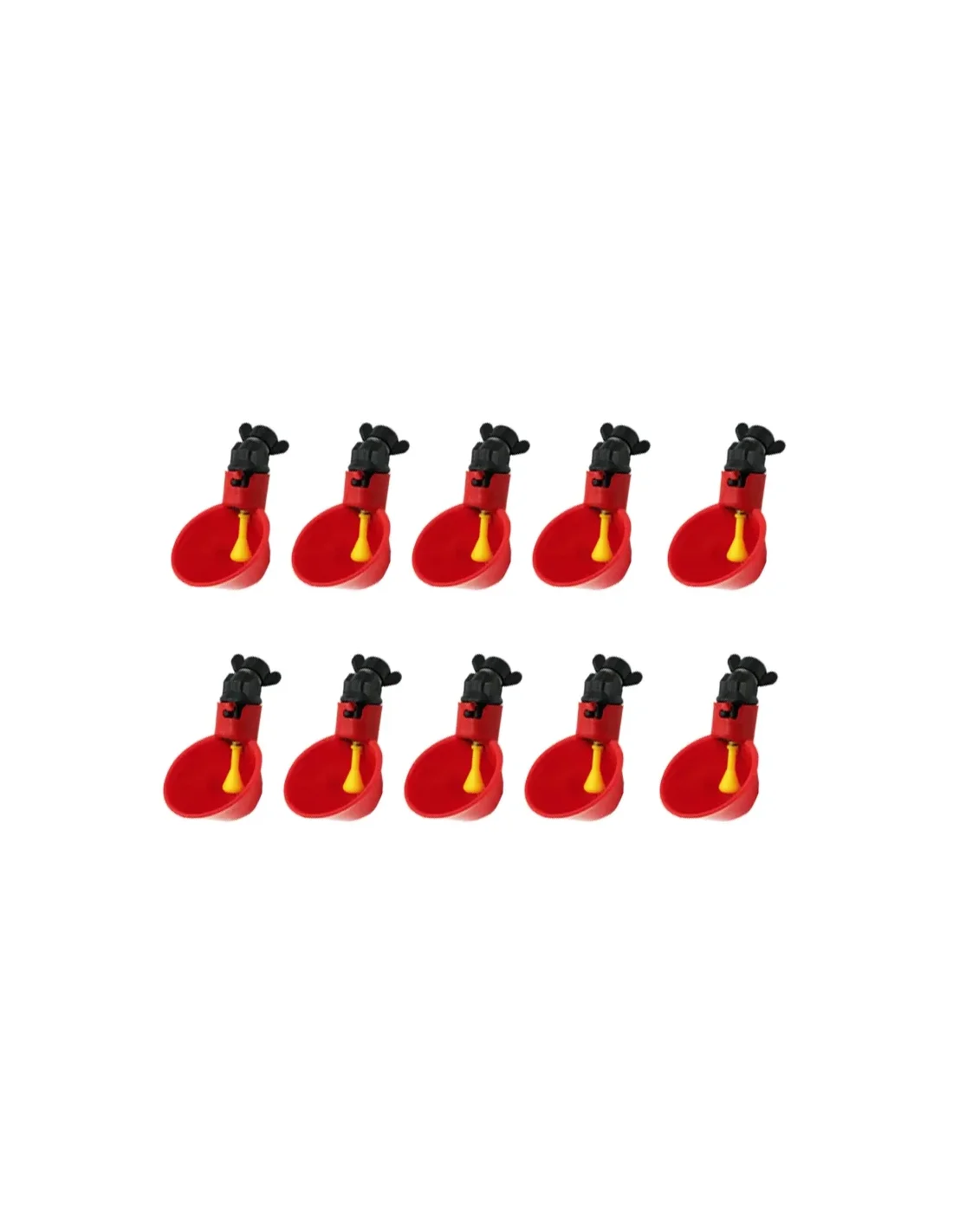 Set de 10 adăpători automate pentru găini și păsări, prevăzute cu sistem de fixare cu piuliță. Soluție practică pentru alimentare constantă cu apă și întreținere ușoară.